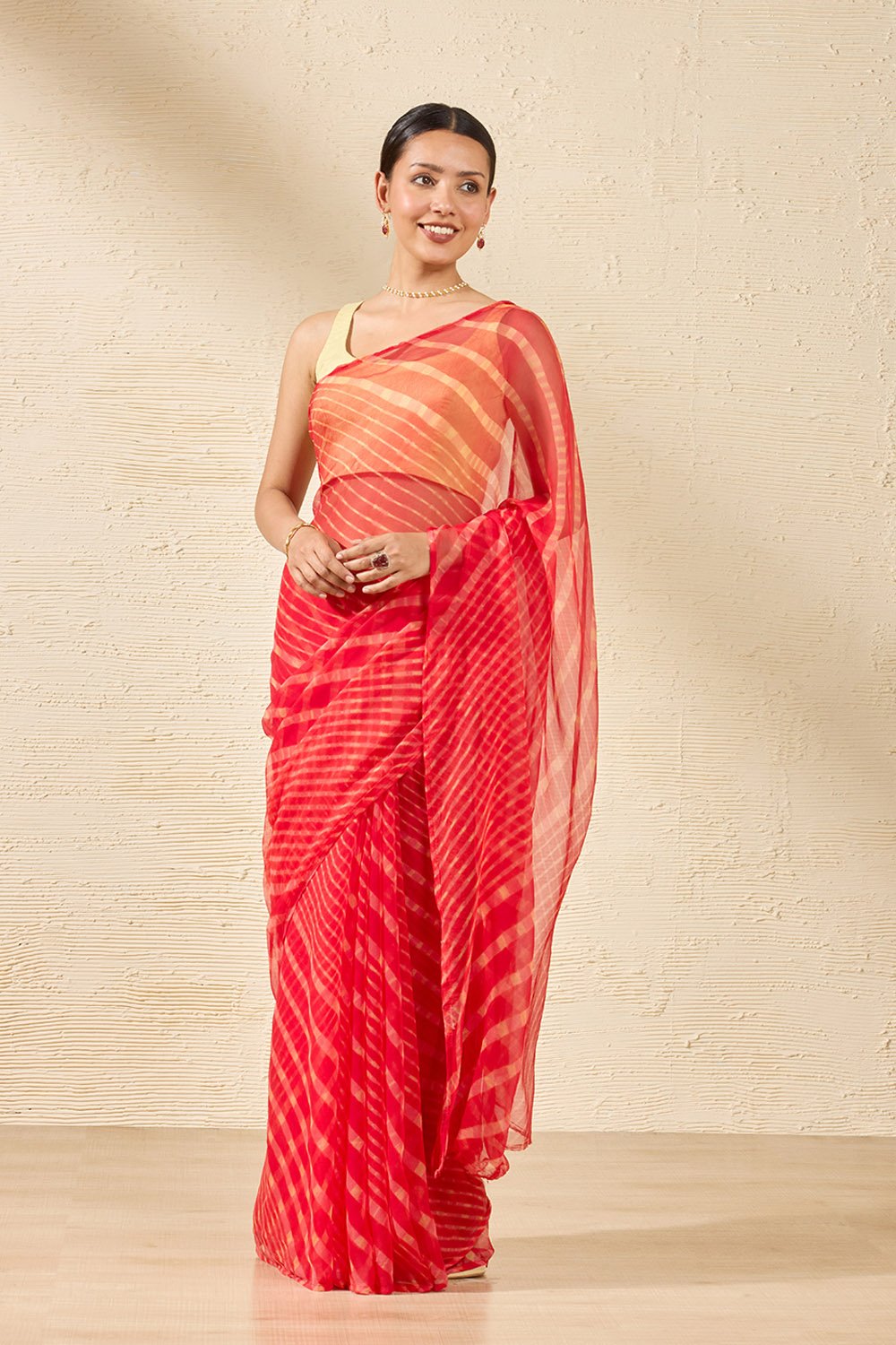 Red Rajasthan Pure Silk Georgette Tie & Dye Leheriya Saree